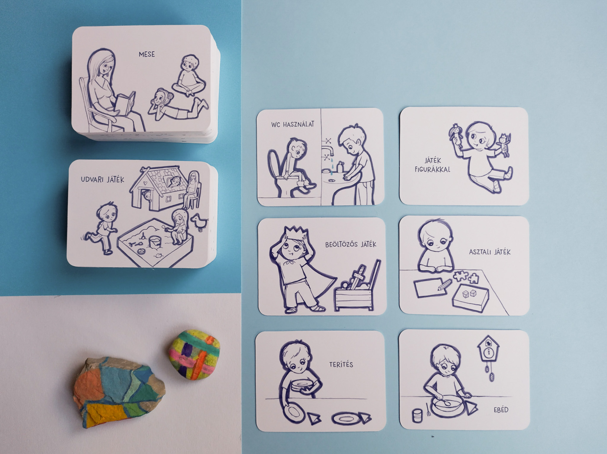 - valamint a „ki jön értem” kártyák (anya, apa, nagyszülő stb.)